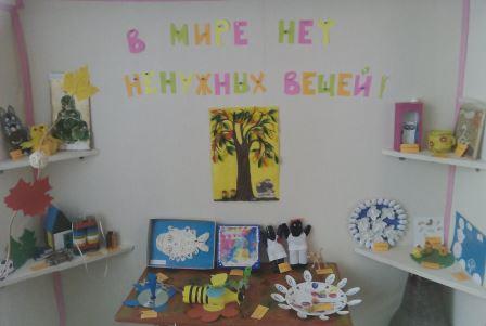 В рамках Года экологии в нашем детском саду прошел конкурс творческих работ «В мире нет ненужных вещей!». Дети совместно с родителями приняли активное участие в конкурсах «Игрушка своими руками», «Картина из отходных материалов», «Полезная штучка», «Пластиковой бутылке – вторую жизнь!», «Изделия из одноразовой посуды», где представили работы, выполненные своими руками из отходных материалов и мусора, т.е. их тех вещей, которые не могут быть использованы по своему первоначальному назначению (пластиковые бутылки, банки, картонные коробки, упаковочные материалы). Все работы получились оригинальными.