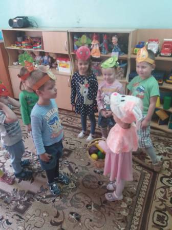 В гости к малышам пришел Зайка. Дети с удовольствием отгадывали его загадки об овощах и фруктах, читали стихи и водили хоровод. С радостью откликнулись ребята на просьбу Зайки помочь разложить овощи и фрукты в разные корзиночки, а также поиграли в игры «Дары леса», «Собери урожай» и «Огуречик». Прощаясь с детьми Зайка подарил угощения.