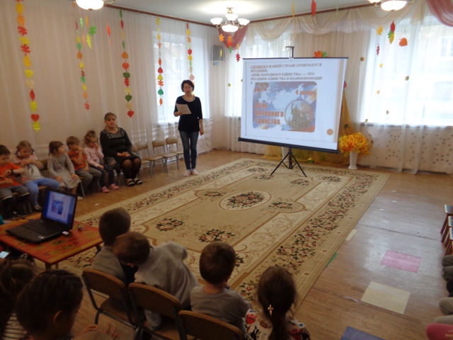 4 ноября вся Россия отмечает «День Народного Единства». В нашем детском саду прошла акция, посвященная этой дате. В ходе акции дети в доступной форме познакомились с историей возникновения праздника, подвигами наших предков во имя независимости Родины. Ребята вспомнили о том, как велика и красива наша Родина, как богата событиями её история, закрепили свои знания о государственных символах.