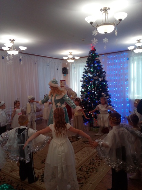 Сверкает разноцветными огнями зелёная красавица — ёлка, Дед Мороз и Снегурочка приглашают в хоровод, а под ёлкой лежат сладкие подарки.