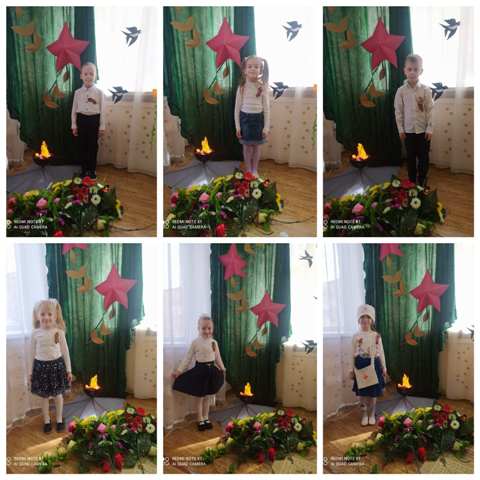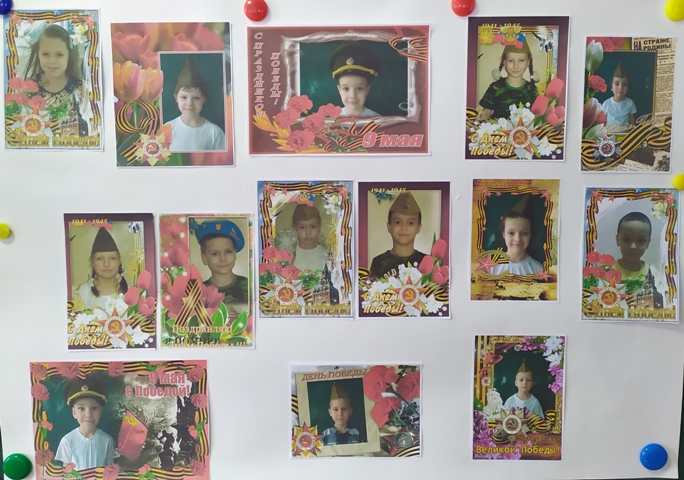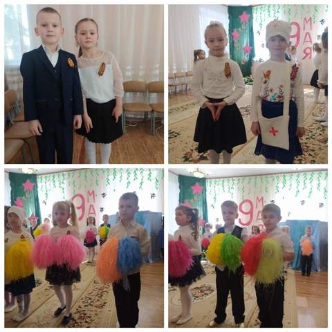 В нашем детском саду состоялось мероприятие, посвященное празднованию Дня Победы. Предварительно с детьми в группах были проведены занятия, беседы о подвигах советских людей, в группах были оформлены выставки детских работ, оформлены родительские уголки, а праздник стал итогом этих мероприятий. Дети показали танец «Майский вальс», упражнение с цветами «Я хочу, чтобы не было войны», дружно пели песни военных лет, эмоционально читали стихи. А также соревновались в эстафетах «Перенеси снаряд», «Доставь донесение». По окончании праздника, воспитанники возложили цветы к «Вечному огню» и почтили память павших минутой молчания.