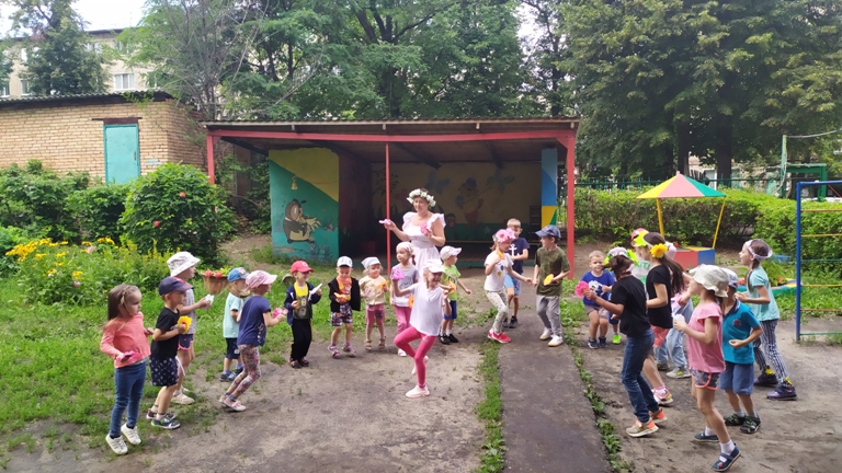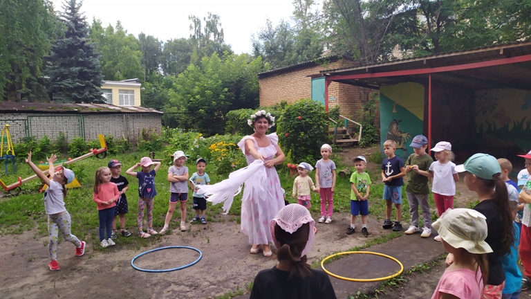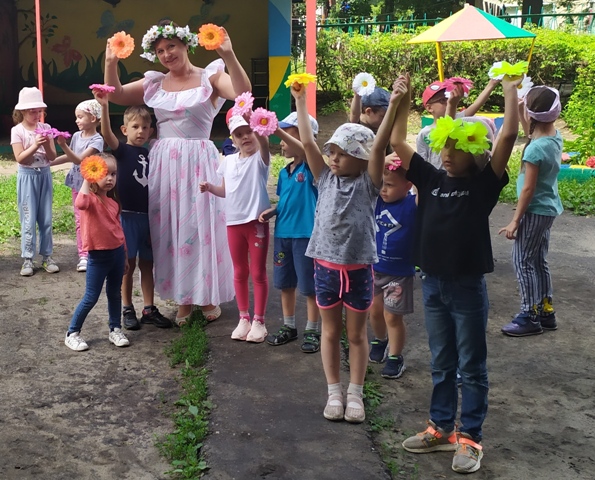 В гости на праздник пришла Фея цветов из цветочного царства, которая провела с ребятами различные конкурсы, игры, посвященные лету, солнцу и цветам. Воспитанники отгадали все её загадки, рассказали, какие цветы растут в нашем саду, танцевали, пели песни о цветах,играли в интересные игры: «Посади клумбу», «Найди пару», «Я садовником родился», а также все вместе завели задорный цветочный хоровод.