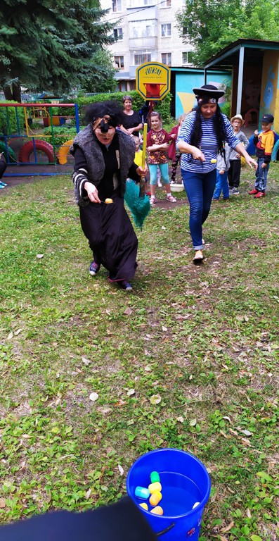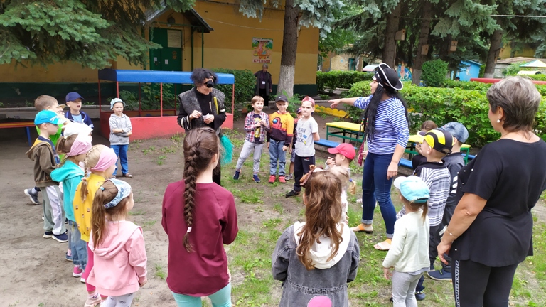 Ребятам вместе с настоящим пиратом предстояло отыскать клад. Но для этого дети должны были найти недостающие части карты. Их ждало множество испытаний, из которых они выходили еще более смелыми, находчивыми, ловкими и сообразительными. В поисках клада дети побывали в гостях у Бабы Яги. Все вместе развеселили ее задорным танцем, отгадали сложные загадки, прошли полосу препятствий, затем с помощью эстафеты «Переправа» добрались до болота, где их ждали лягушки. Помогли спасти головастиков, перенесли их из болота в чистую воду. После каждого выполненного задания ребята получали часть карты. Бесстрашные ребята легко справились с трудностями, прочитали зашифрованную карту и добрались до острова сокровищ, где нашли сундук. Вместо сокровищ, детей в сундуке ожидали подарки от пирата. Праздник прошел в тёплой дружеской атмосфере. Дети очень сплотились во время игры. Все участники получили отличный заряд бодрости и море положительных эмоций!