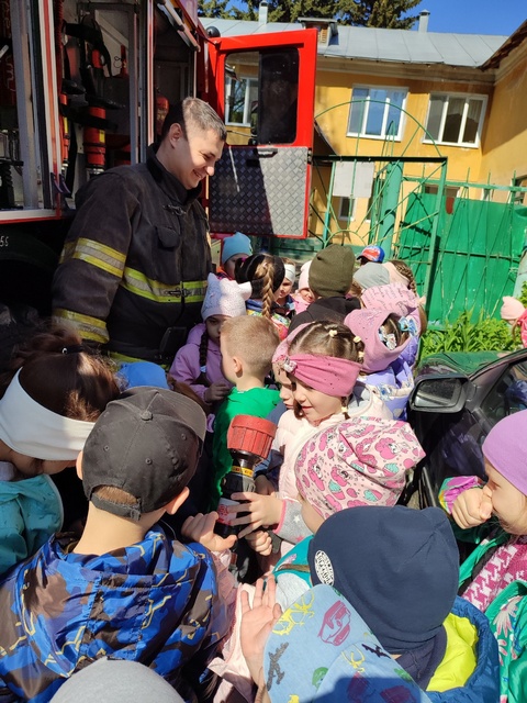 В гостях у детей детского сада «Крепыш» побывали сотрудники СПСЧ № 4. Огнеборцы познакомили малышей со своей непростой, но очень важной работой. В дошкольное учреждение пожарные, как и полагается, прибыли на пожарной машине. Воспитанники с легкостью узнали большую красно-белую машину, хотя увидели ее вблизи впервые.