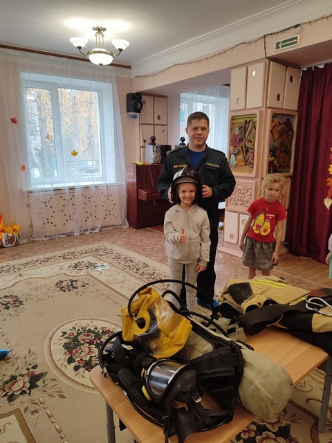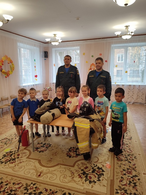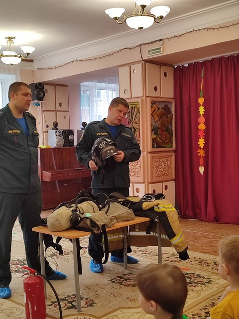 В нашем детском саду прошло мероприятие по обучению мерам пожарной безопасности. В гости к ребятам приехали настоящие пожарные — специалисты специализированной пожарно- спасательной части 1 пожарно — спасательного отряда ФПС ГПС Главного управления МЧС России по Пензенской области Челюканов Валерий Валерьевич и Ануфриев Илья Олегович. Они рассказали, как себя вести при пожаре самим и как помочь другим людям. Практика показывает, что общение с детьми напрямую является более результативным, так как дошкольники лучше усваивают информацию, основанную на личном опыте. Дети задавали много вопросов об истории пожарной охраны, о профессиональной деятельности. Ребятам показали предметы боевой одежды, пожарно-спасательный инвентарь. Девчонкам и мальчишкам было интересно примерить пожарные каски.
